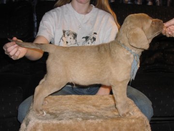 Piper is doing great.  She still gets the rash.  But the vet gave me a topical spray that seems to make it go away.  Other than that she’s the best dog.  She goes with me everywhere.  Everyone that meets her just loves her temperament and how beautiful she is.  She’s getting so big too, 80 lbs. and fit.  Her and my dad’s Chesapeake are always in competition and love to play and swim.  She swims regularly at our cabin and I’ve taken her to the beach a couple of times.  I couldn’t keep her out of the water if I wanted to   Jared  11/20/2007
