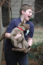 We just love her!  She’s full of energy and always happy.  Nellie has been a bit spoiled since she’s gotten here.  She loves to sleep in our bed at night, take showers whenever possible, and show the cat who is boss.  She follows me everywhere, and in turn, I take her with me most places.  She’s very comfortable riding in the car.  Nellie has made us so happy.  My three boys love to play with her, though she likes to show the little one that she’s the boss.  We’ve enjoyed every moment with her and cannot thank you enough for giving us the funniest, most adorable and lovable pet ever.  Thanks, The Family   4/3/2007