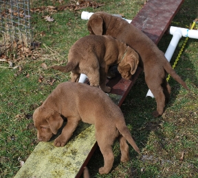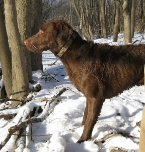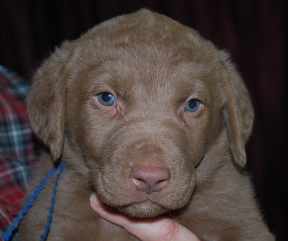 Denver is 24.5” 90lbs properly coated, well-boned, correct conformation and a gorgeous head.  On the temperament side, he has a fabulous disposition. He is one of the favorites when people come to visit at the kennel. In the field, he is a focused, stylish and determined retriever who LOVES the water particularly surfing the ocean waves.  Both grand-sires -paternal and maternal- & his maternal grand-dam are outstanding retrievers and specimens of the breed.  Denver’s litter, itself, has proven to be one of the most talented we have bred. Puppies from his first litters are showing bone, short backs and strong rears with good balance of angles.  Dyane Baldwin (owner).  More information on Denver can be found on the Pond Hollow website.  pondhollowchesapeakes.com   Falcon is and always has been my favorite girl to work with.  Puppies from her first two litters are fantastic.  The two puppies I kept are Condor and Eagle you can see them on their pages.  For more information on Falcon and more pictures please take a look at her page.  I'm so excited that this breeding is finally going to take place.  I'm hoping for many beautiful puppies and would love to keep a girl.